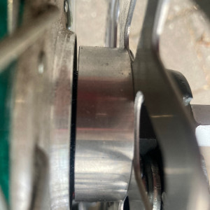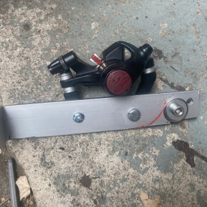 Die Bleche aus dem ersten Projekt sollten weiter verwendet werden. Dadurch daß der Cesur Adapter mehr aufträgt ist nun auch der Bremssattel weiter nach außen gewandert.