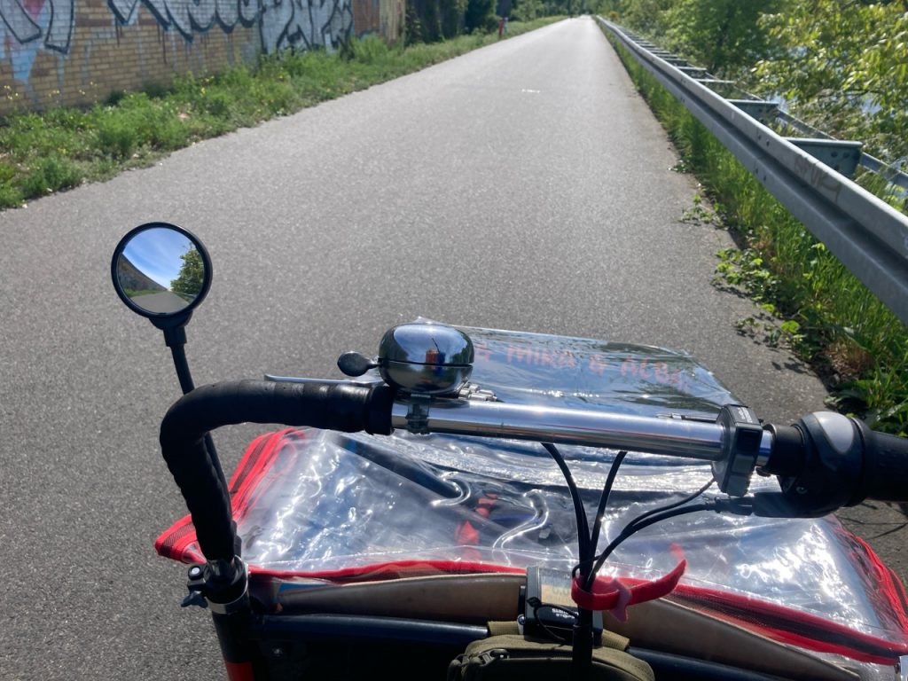 Für die Sicherheit sorgen reichlich Reflektoren und auch ein Rückspiegel. . Der ist wirklich cool weil er eine gute Sicht auf den Verkehr hinter einem verschafft.