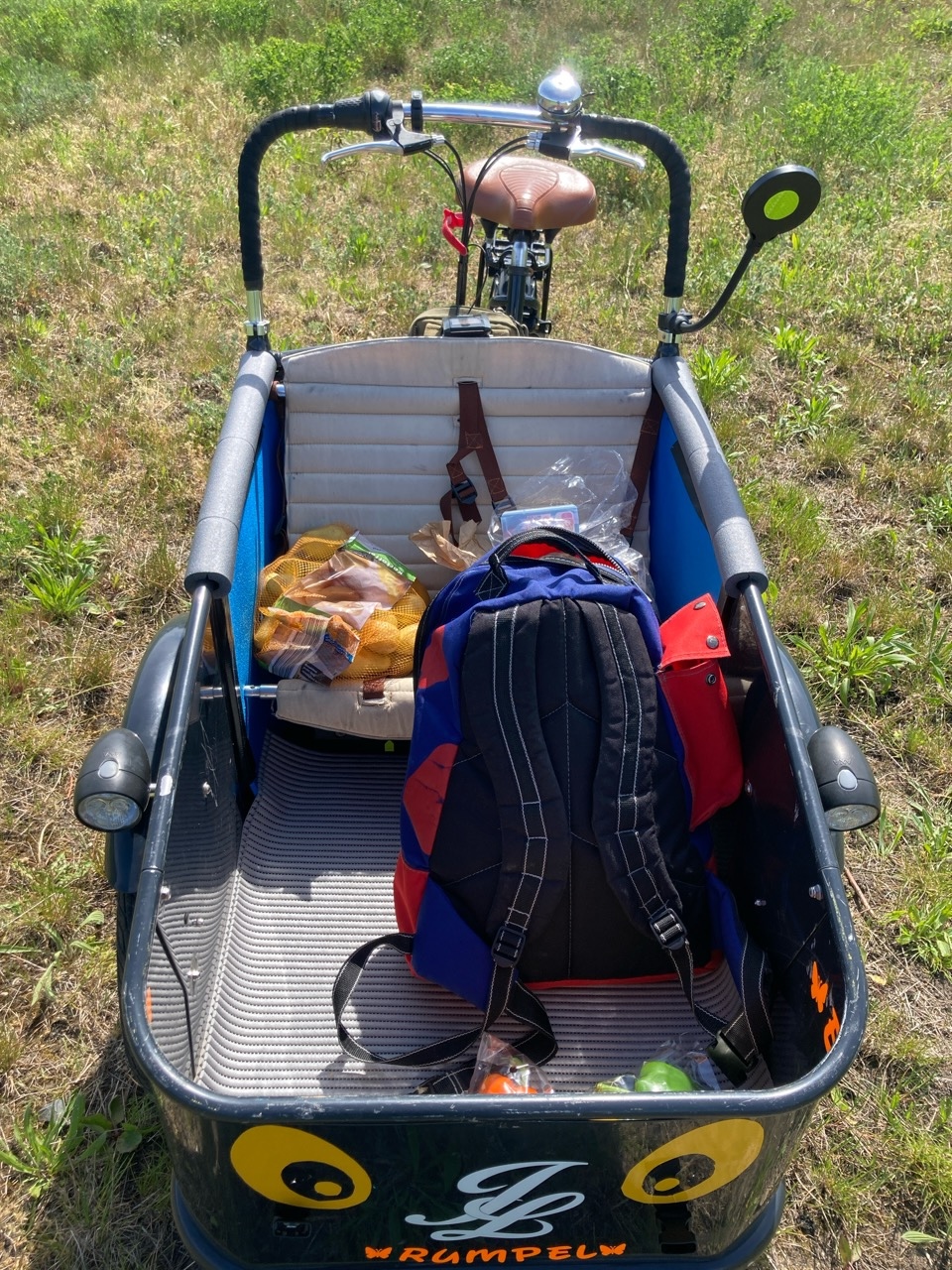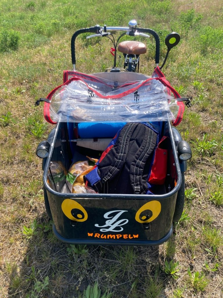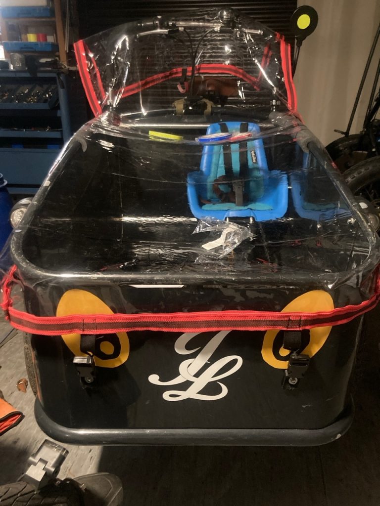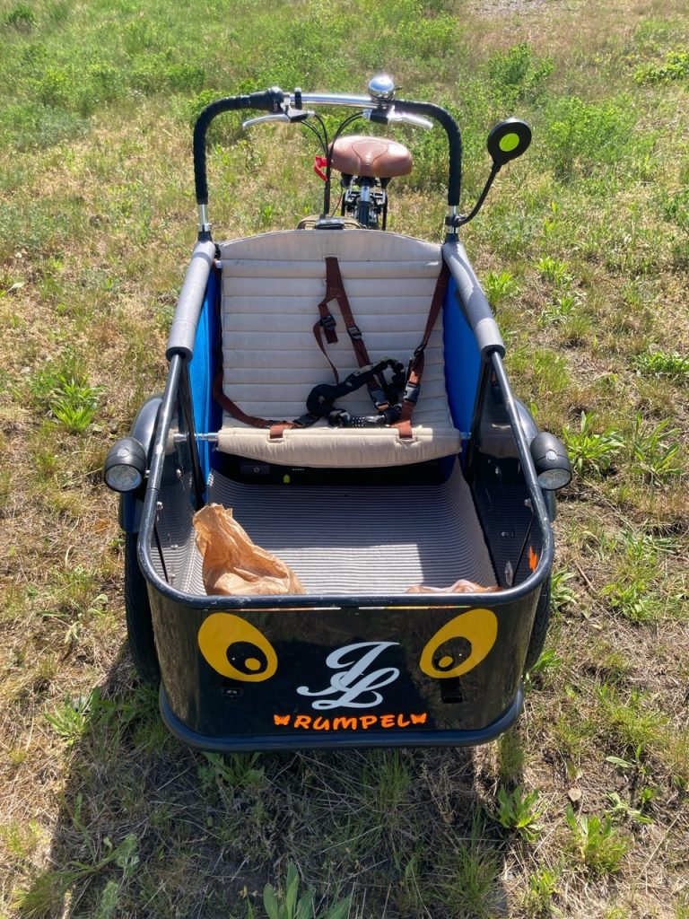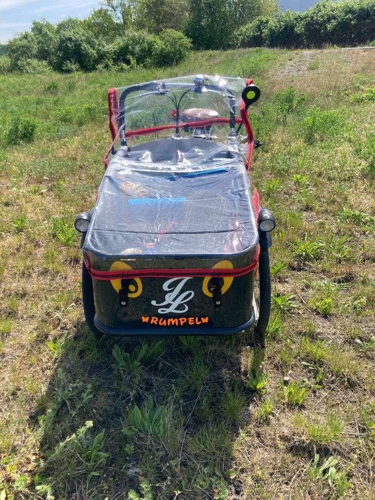Das Loco kam ohne Verdeck, aber das Original fand ich auch noch nie praktisch und schön. Die neue Abdeckung ist dem Loco-Zwilling ähnlich mit ein paar Detailänderungen. Auf jeden Fall können so Ladung und Passagiere vor Wind und Wetter geschützt werden. Der FahrerIn bekommt wenn nötig so auch einen Schutz der im Winter besonders wichtig ist weil die Hände aus dem Fahrtwind genommen werden.