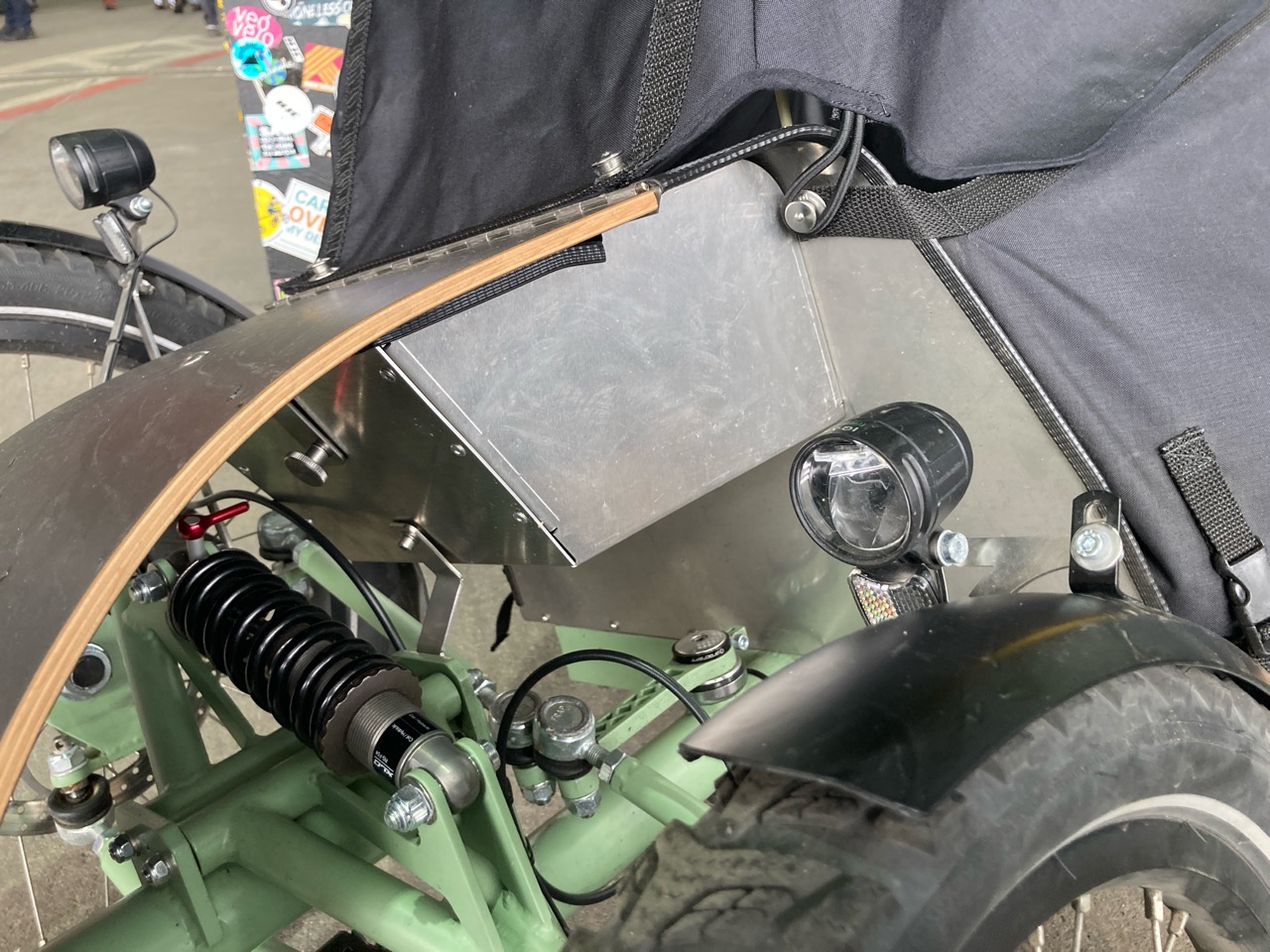 Mit einer vorbereiteten Montageplattform aus Aluprofilen wurde das Rad in kürzester Zeit umgebaut. Das ist wirklich flexibel. Der Aufbau stammt nicht von Mäx Mäleon.