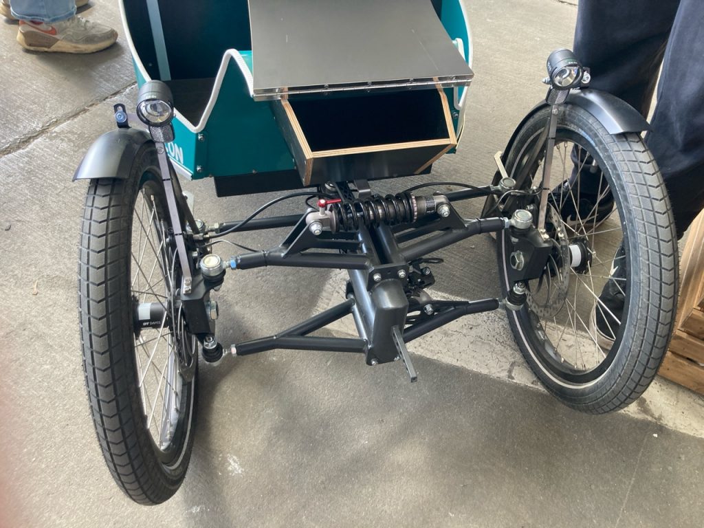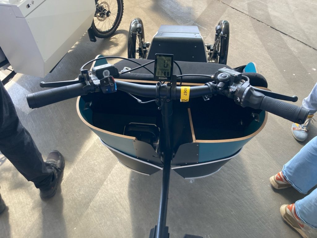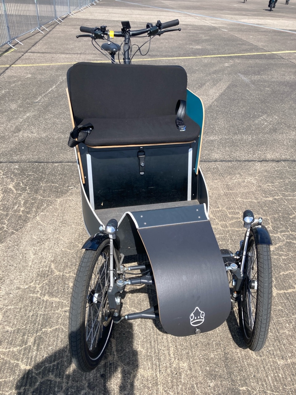 Wir hatten ja leider nur begrenzte Zeit mit dem Fahrrad auf der Messe zur Verfügung, und Andere sollten ja schließlich auch noch zu ihrem aussergewöhnlichen Fahrerlebnis kommen. Aber mir ist wirklich nichts eingefallen-aufgefallen was mir nicht gefallen hat. Die Verarbeitung empfand ich als sehr hochwertig. Holz als Aufbau bedarf spezieller Pflege was jedem klar sein sollte. Die reine Cargo-Version gab es auch, ich habe nur vergessen Fotos davon zu machen.