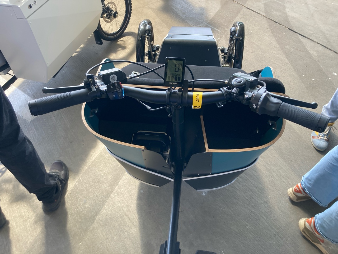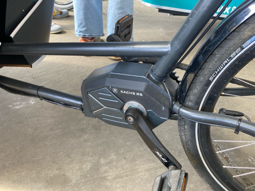 Ja da gibt es eigentlich nichts zu meckern. Im Vorfeld hatte ich gehört das der Sachsmotor sehr laut sein soll. Aber das kann ich so gar nicht bestätigen. Er ist nicht so flüsterleise wie der Bafang bbs0x aber auch überhaupt nicht laut. Er schob langsam auf Stufe eins und viel mehr auf der hohen Stufe. Hat mir gefallen so wie er ist. Die Bremsen machen was sie sollen…. Bremsen, auch bei hoher Zuladung haben sie zuverlässig und sehr gleichmässig gebremst. Die Parkbremse war über eine “zweite” Bremse hinten via Kabel realisiert, ansonsten war alles hydraulisch angesteuert. Der Akku war sehr gut in der Verkleidung versteckt.
