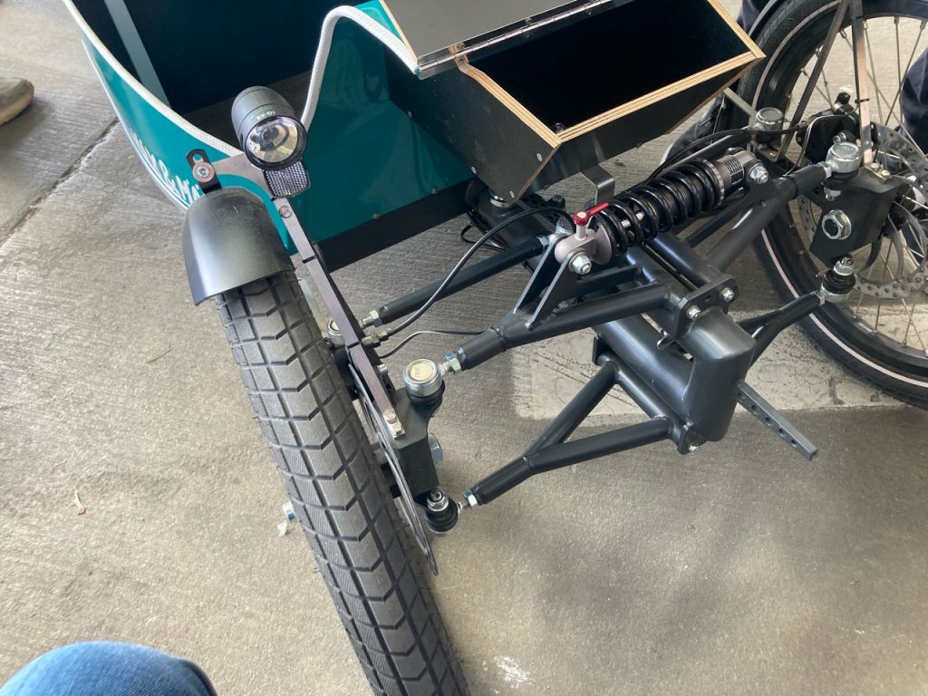 Mit diesem Rad habe ich schon lange geliebäugelt. Es hatte eigentlich alles was ich schon lange haben wollte. Doppelquerlenker, Neigetechnik, vorn gefedert, hohe Zuladung und flexibel im Aufbau in der Motor und Schaltungskonfiguration. Dazu noch die coole Firmenphilosophie von Mäx Mäleon, passt.