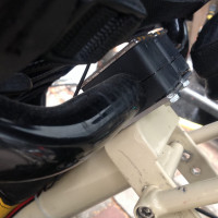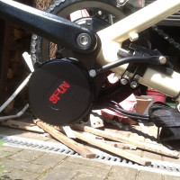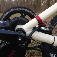 BBS01 im Steintrike Wild OneTeil1: So nun habe ich es doch getan. Nach dem mein Aiolos Trilite Umbau nun in Hamburg fährt hat mir doch so ein Bike für Faule gefehlt. Mit dem W1 war ich schon ohne Motor zufrieden, dennoch war ich nicht zu 100% überzeugt von diesem Rad. Die Kinderkrankheiten habe ich dann so halbwegs beseitigt nun sollte es auch noch von alleine rollen. Für diesen Umbau habe ich mich wieder für den BBS01 entschieden, bis jetzt war ich ja mit dem Motor mehr als zufrieden und die Software kenne ich ja auch bestens. Folgen Umbausatz habe ich mir von Petto-Bike besorgt: Es ist die Variante mit Kommunikation, welche den Akku-Füllstand besser anzeigen soll. Natürlich mit E-Stufe Vorab habe ich mit Georg von Petto schon telefonisch geklärt was ich so zusätzlich von denen brauche. Da ich nun schon im voraus wusste wie mein Controller konfiguriert werden sollte habe ich die Settings gleich zu Petto-Bike durchgegeben. Was kam war wie immer eine Überraschung  Kabel für den Akku in verschiedenen Längen, ein extra Kabel für das spezielle Licht-Bremskabel, 52ziger Kettenblatt, der Controller mit meinen Vorgaben konfiguriert …alles dabei. Der vorausgesagte Termin hat auch gestimmt was will man mehr. Der Controller hat meinen alten Gasgriff gleich erkannt und durch ein Update im Display hat der Motor auch über die Minustaste eine Schiebehilfe. Beides geht parallel. Was sie nicht hatten war ein Verlängerungskabel für den Speedsensor das habe ich mir hier bestellt am Motor wollte ich kein Kabel zerschneiden und verlängern. Teil 2: Motoreinbau Na wie erwartet ist das kein Hexenwerk. Altes Tretlager raus, BBS01 rein. Das Tretlager vom Steintrike macht da keine zicken und der Motor sitzt stramm im Ausleger. Wer wie ich den Motor so nach hinten gekippt einbauen möchte, braucht ne Eisensäge weil man sich dann von einer angeschweißten Mutter am Ausleger unten verabschieden muß. Die ist eigentlich als Lampenhalterung gedacht. Na die war dann bei mir ganz schnell weg und mein Motor konnte nun nach hinten gekippt werden. Ist für den Schwerpunkt besser und ich finde den Motor oben an den Schaltausleger angelehnt sieht einfach schei….. aus. Mit der beiliegenden Drehmomentstütze habe ich den Motor einfach nicht fest bekommen. In weiser Voraussicht habe ich erst die Kabel locker verlegt und reichlich Spiel gelassen. Der erste Versuch hat den Motor in der E-Stufe und im kleinsten Gang beim Anfahren immer nach oben gedrückt. Ja ich weiß so fährt man nicht an aber ich wollte halt sehen ob die Drehmomentstütze hält. Sie macht es nicht.Sie ist auch richtig herum angebaut  Die erste Rändelschraube die die Drehmomentstütze an den Rahmen presst ist so doll angeknallt das der Lack geblättert ist. Also musste ich wie beim Aiolos ne zusätzliche Drehmomentstütze anbauen.