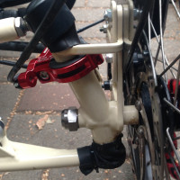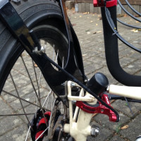 Steintrike – Wild One Haarriss in der SchutzblechaufnahmeIn meiner linken Radaufhängung hat sich ein Haarriss gebildet. Ich denke er hat sich durchvibriert so im laufe der Zeit. Ich glaube das die linke Radaufhängung dem Gewicht geschuldet etwas labil ausgelegt ist. Alleine der Schutzblechhalter ist schon sehr massiv ausgelegt zusammen mit dem PneuFender vielleicht ein bisschen viel für die alte Radaufhängung, die vom neuen Modell sind wohl etwas verstärkt. Aber da merkt man wie brutal die Federung vorn arbeitet.