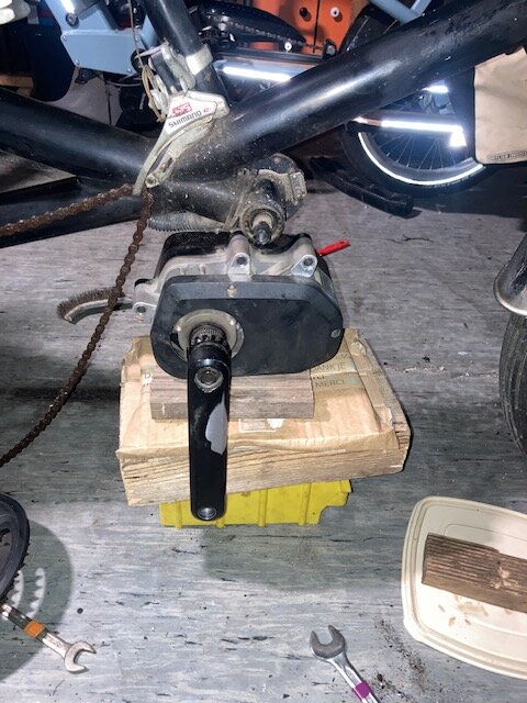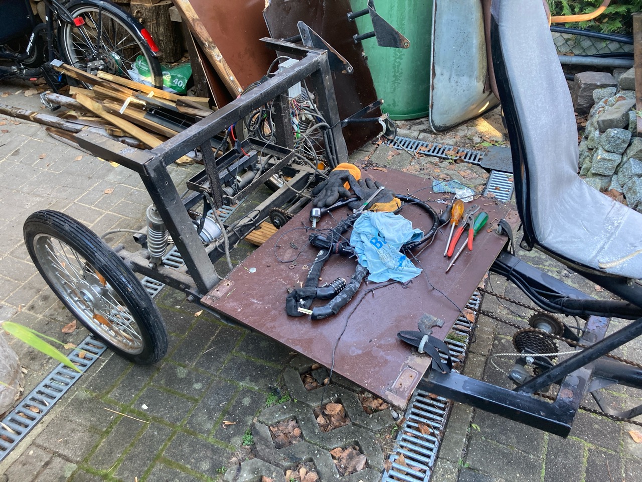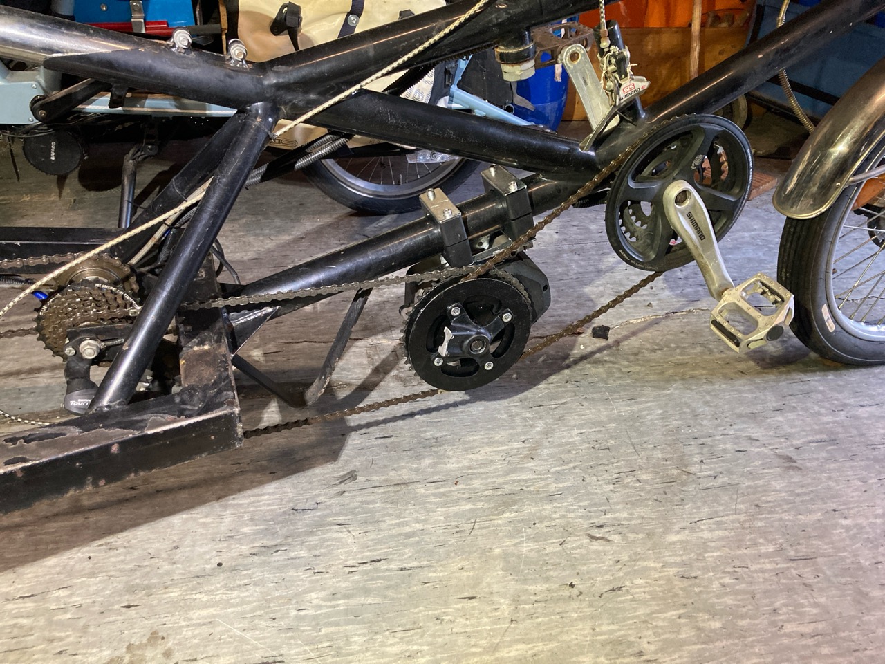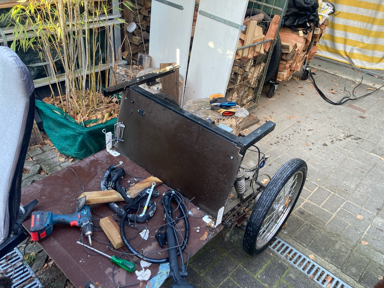 Dann kam die Idee auf, dass eventuell der Tretsensor des Motors nicht ausreichend belastet wurde, da das Trike hinten hochgebockt war.