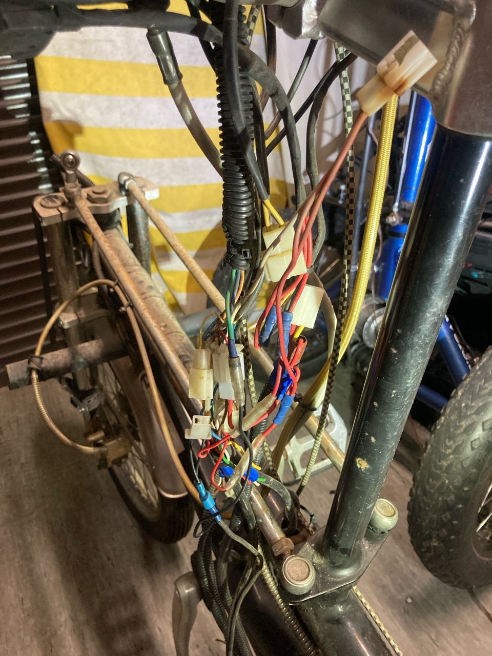 So nun muss der Rest an Kabellage vom Rad. Vorsichtig wurden alle Leitungen vom Rad entfernt, der Motor sollte ja dabei nicht seiner Funktion beraubt werden.