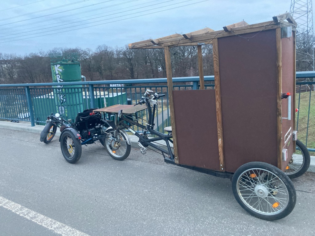Auf diesem Weg kam das Velotaxi angehängt zu uns.