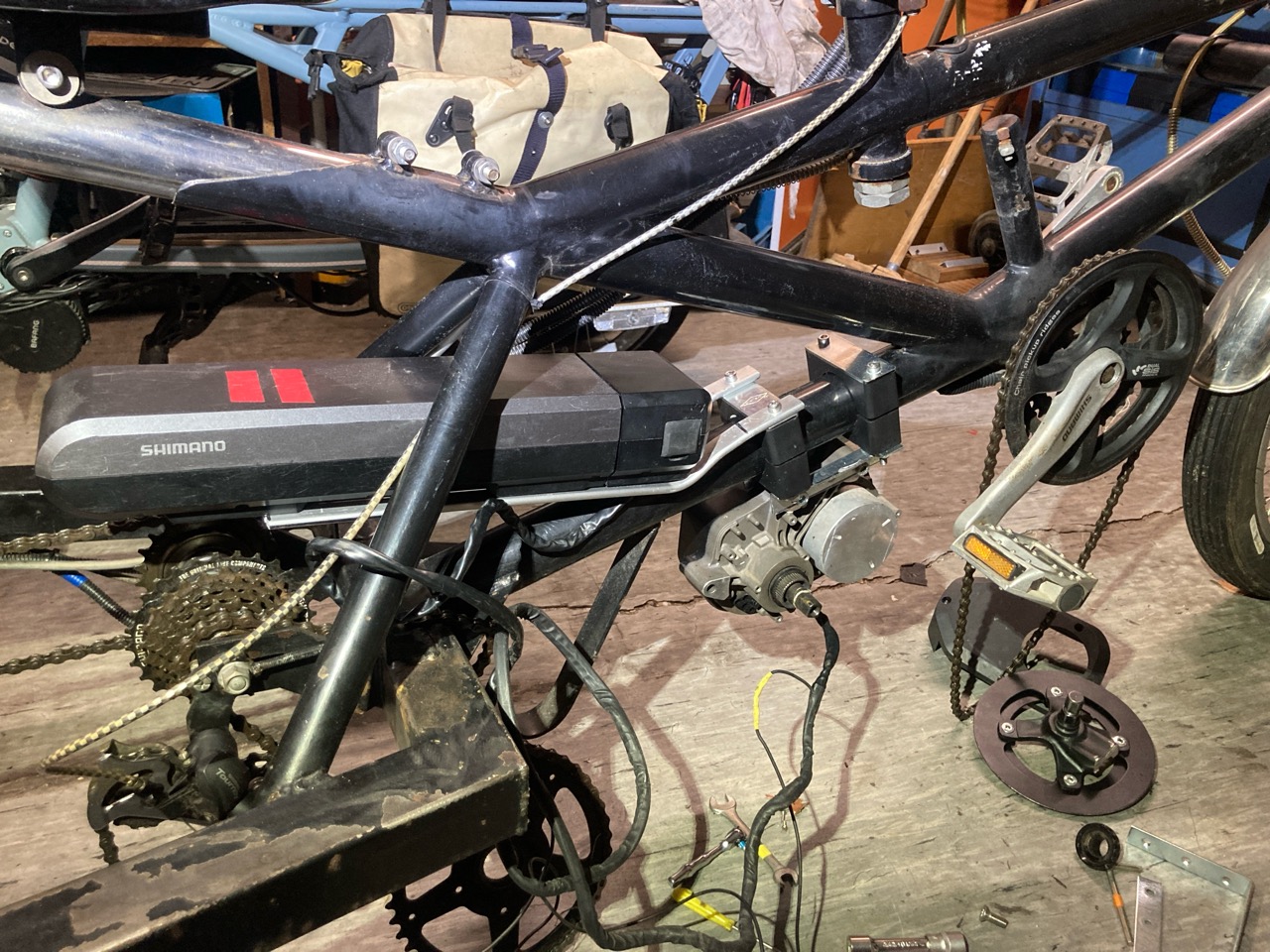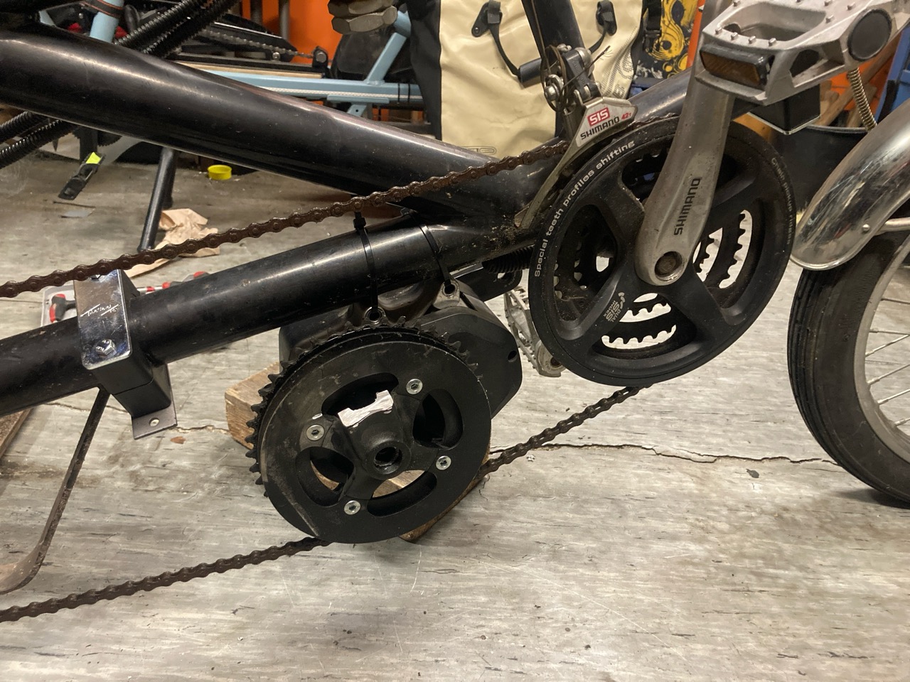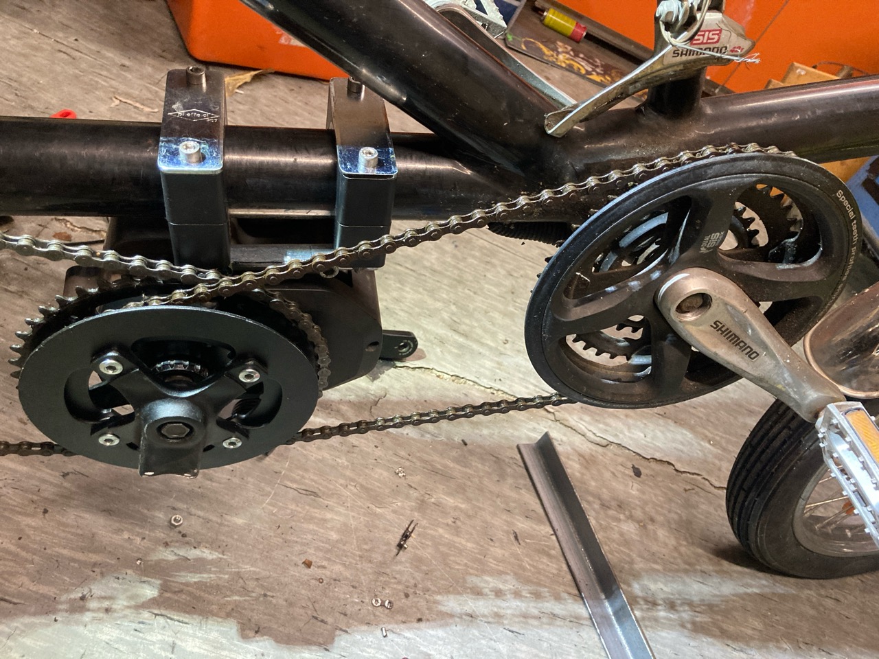 Es wurde aber schnell klar daß das ein heikles Unterfangen war, weil der Motor viel tiefer und die Kurbel insgesamt näher zum Fahrer gerückt wäre.