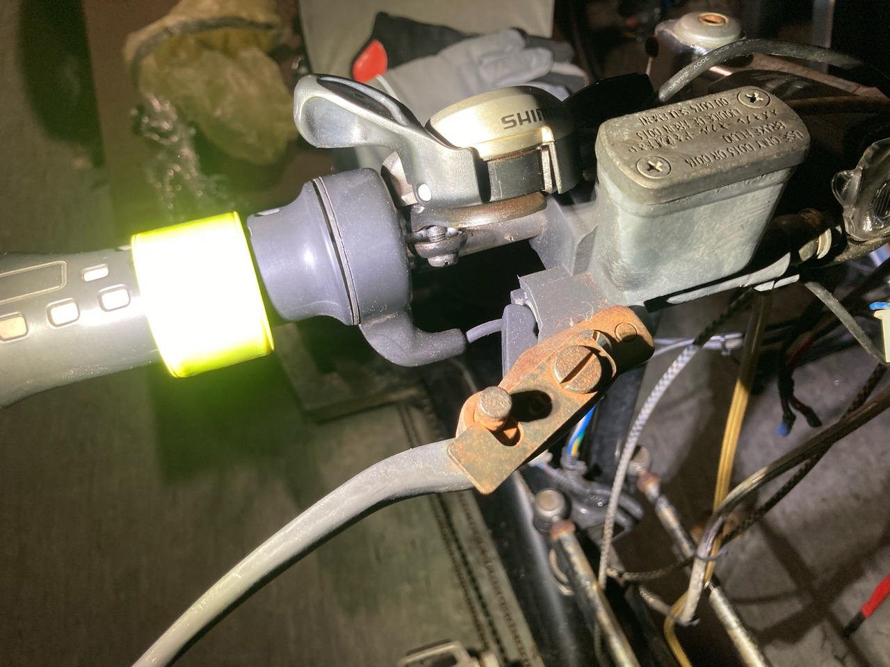 Einer der Beiden Bremsgriffe mit angegammelter Feststellfunktion, und der Bremsverteiler für die hinteren Bremsen.