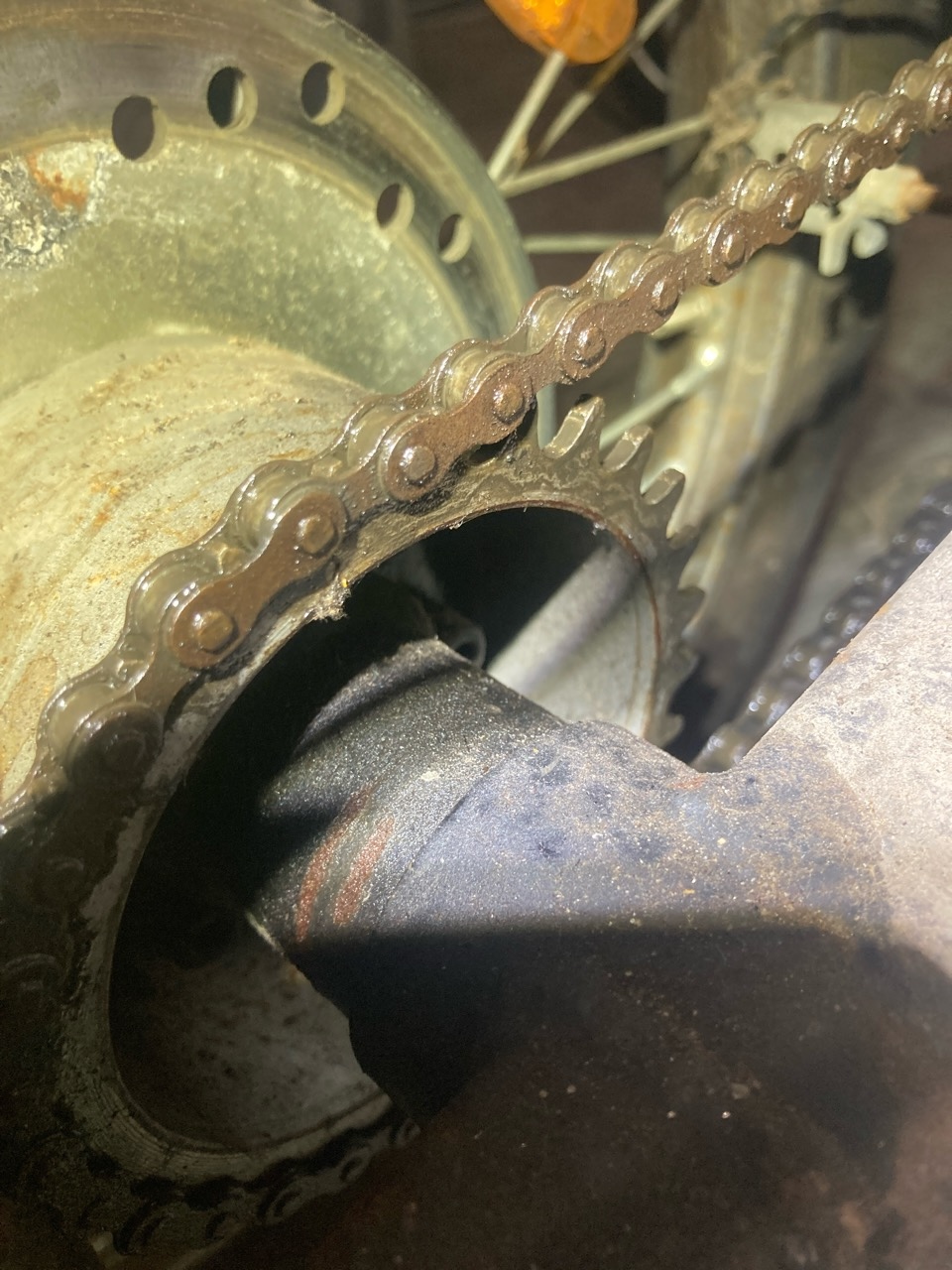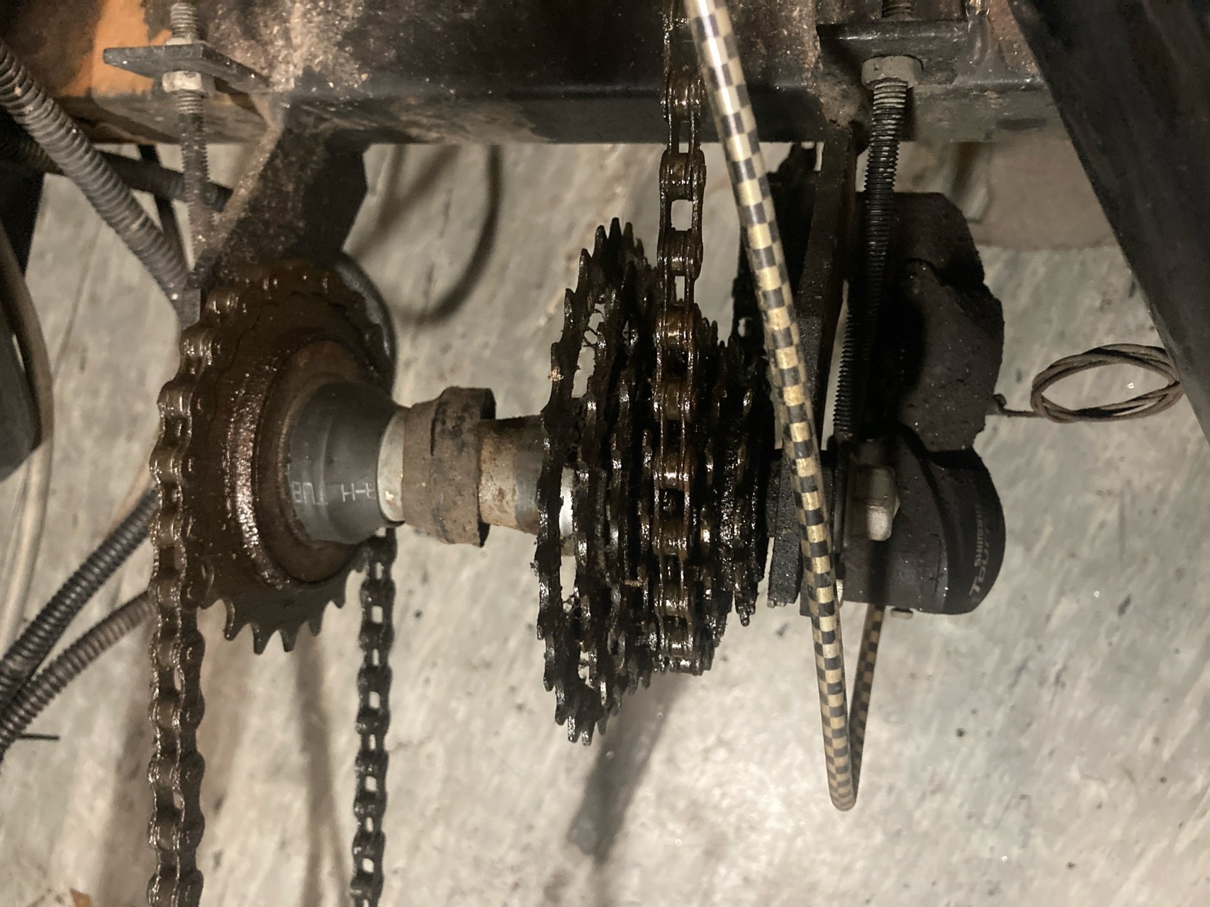 Die „alten“, zusammengeflickten Ketten laufen sauber. Alle sieben Gänge des Zwischengetriebes lassen sich ebenfalls nutzen, ohne dass die Kette abrutscht.