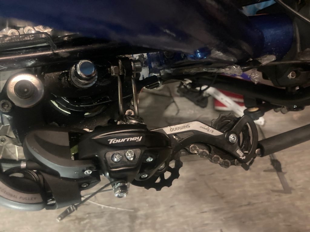 Aber die Kette hängt dann schön gespannt unterm Wiesel. Auch hier ist das schon die Vorbereitung für den Bafang-Motor.