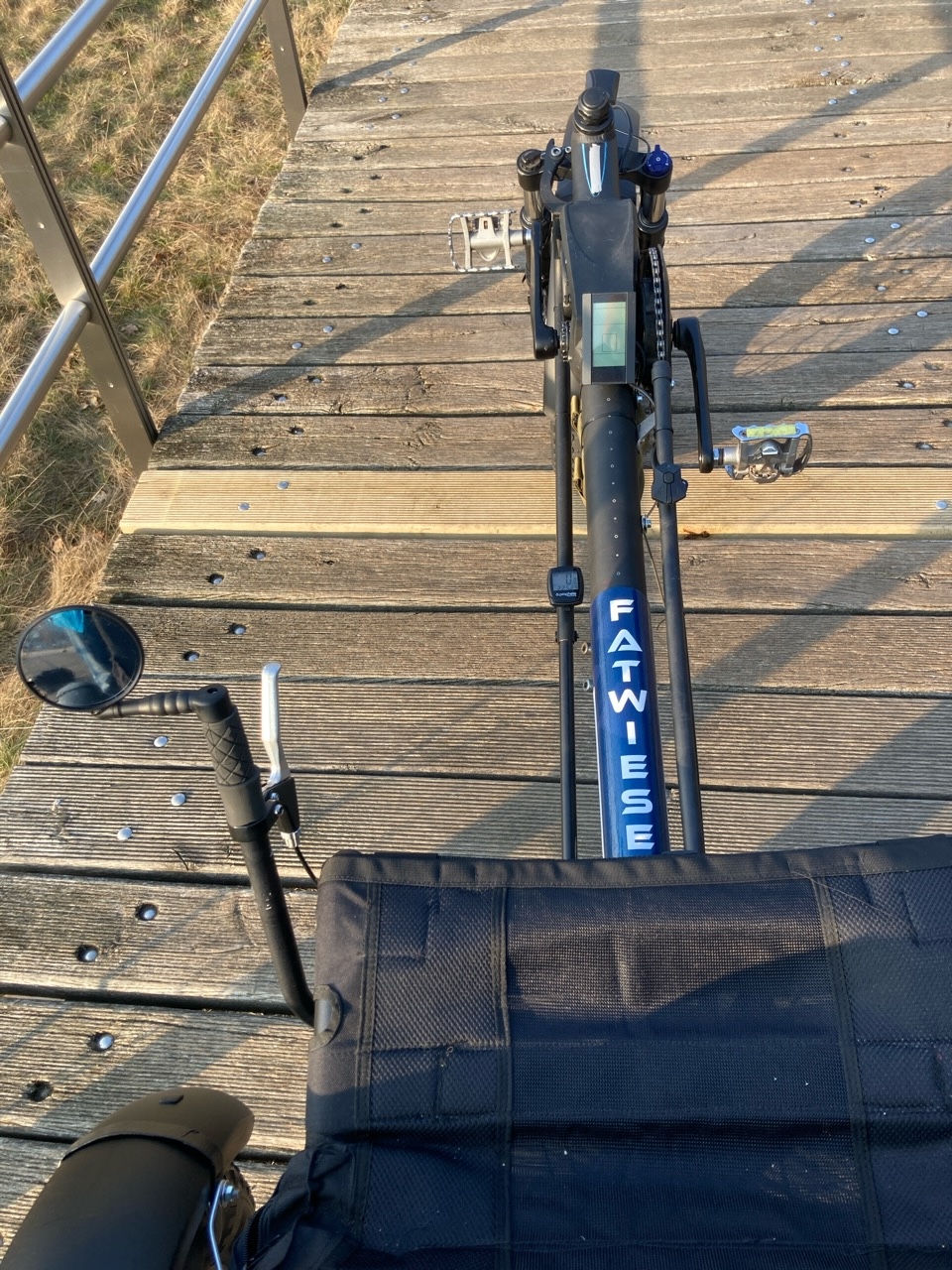 Die erste Fahrt bei richtig schönem Tauwetter hat dann gezeigt, dass man von vorn eine richtig schönen Dusche zwischen die Beine bekommt. Deshalb nun der Sabberlatz der das meiste dann doch wieder nach unten lenkt. Ob er ausreichend lang ist wird sich zeigen.