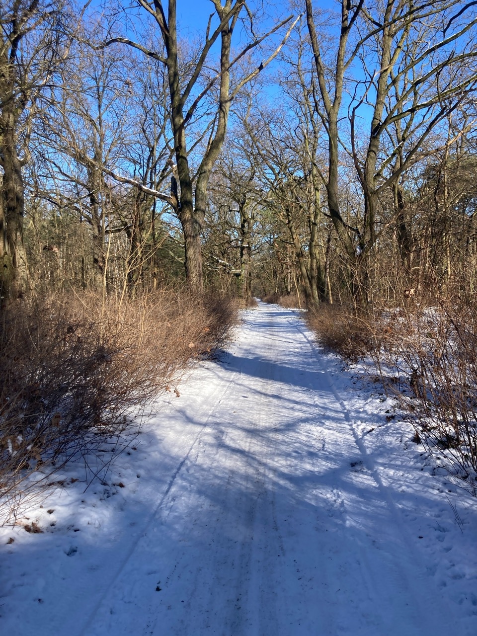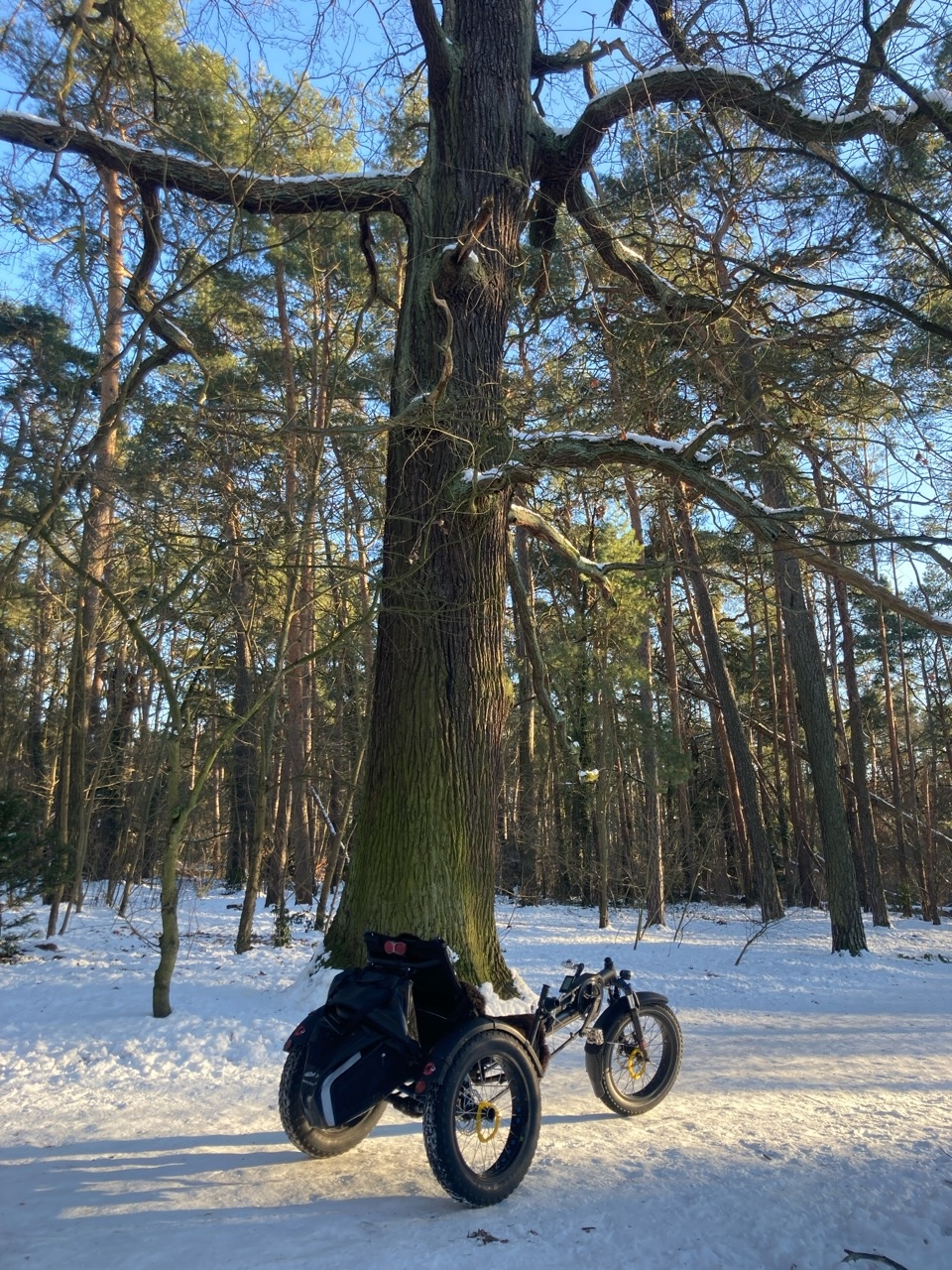 Heute eine weitere Runde durch den Wald, über eingefrorene Sandwege, Eis  und Schnee zu Hofrad in Friedrichshain.